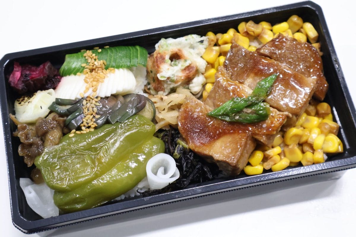 【食べてみた③】ひとつひとつおかずが丁寧でビジュアルもワクワク!細川出飯社「画廊弁当(トンテキバターコーン弁当)」