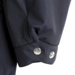 クラシックなミリタリー フィールド パーカーをスタイリッシュな現代⾵にアレンジした「スカイ スタンド カラー」をベースに、フロントジッパーをボタンと同⾊のシルバーに仕上げ、裾のスピンドル位置をフロントからサイド内側に変更。