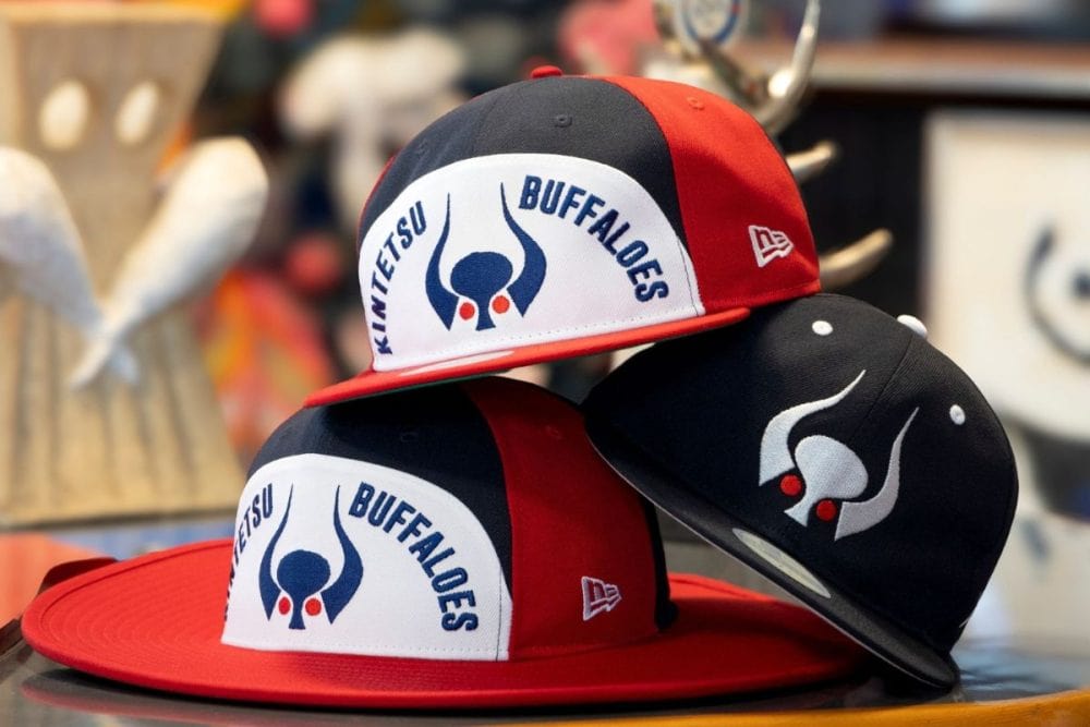猛牛をモチーフとした大阪近鉄バファローズの球団ロゴは、1959年に岡本太郎によって制作されたデザイン。今回は、これまで展開してきたヘッドウェアラインに加え、本コラボレーションとして初となるロングブリムハットが登場。