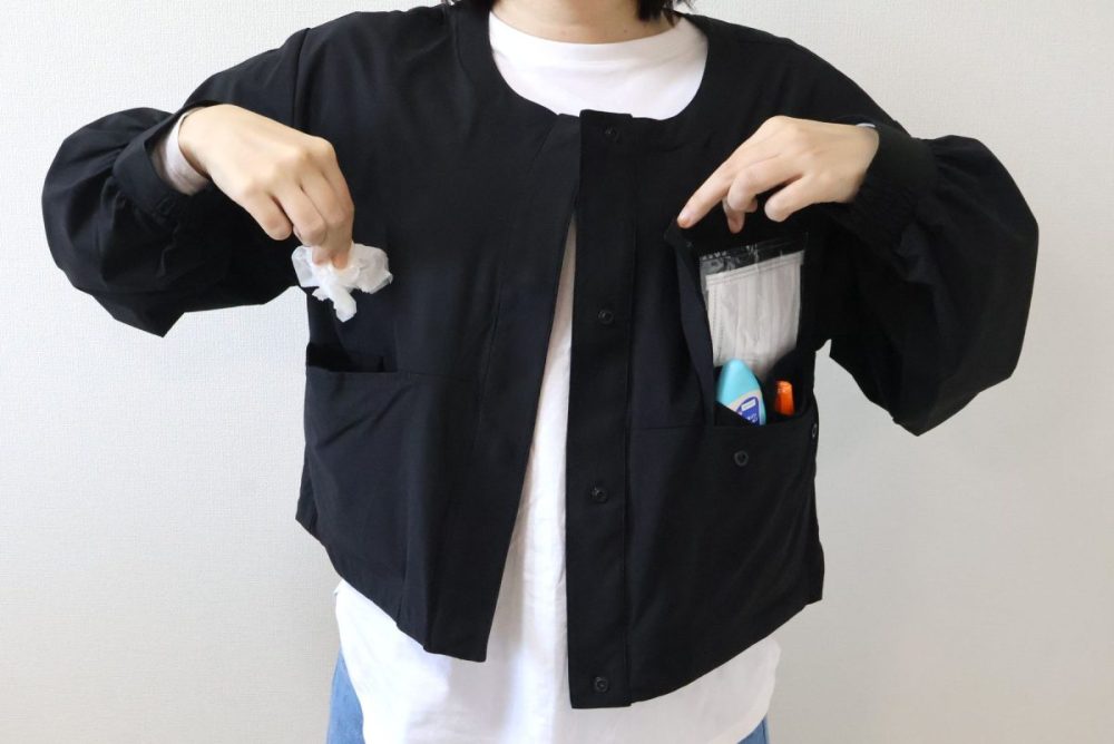 まず驚くべきは、生地自体の性能です。繊維上の花粉やダニの排泄物由来のタンパク質を低減する特殊加工が施されているほか、撥水・UVカット・抗菌防臭など機能性がてんこ盛り。一般的なアウターとの厳密な比較は難しいものの、「花粉症の原因物質が付着しづらい」と聞くだけで試してみたくなりますよね。