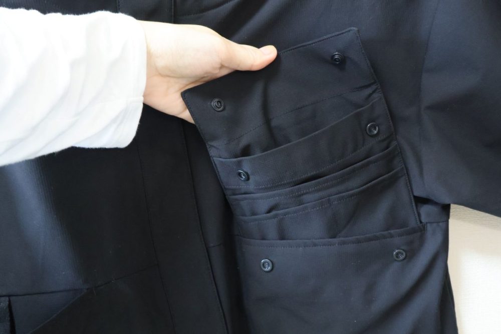 右ポケットにはなぞのスナップボタンが2か所付いています。
