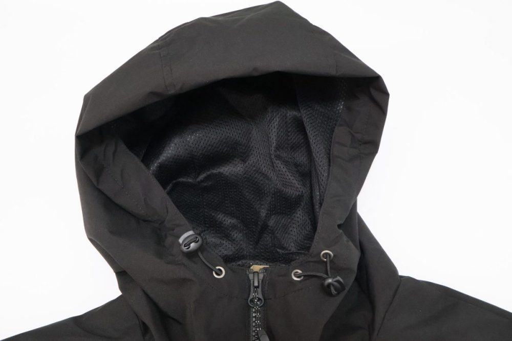「テックシェルパーカー」のキャッチコピーは“雨・風・紫外線から守る高機能ジャケット”。真冬に着用するには少し薄手ですが、まだ肌寒い春や秋に重宝するウィンドブレーカー的存在です。
