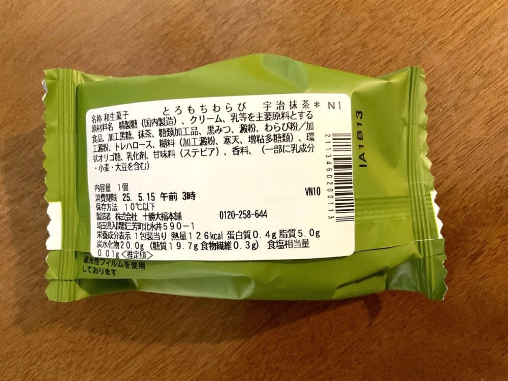 手に取った瞬間、ずっしりとした重量感で「これは期待できるぞ」と思わせる生どら焼。ふわもちの生地に濃い抹茶クリームと粒あんがたっぷりサンドされていて、もうこの時点で大満足。小腹満たしにもぴったり!
