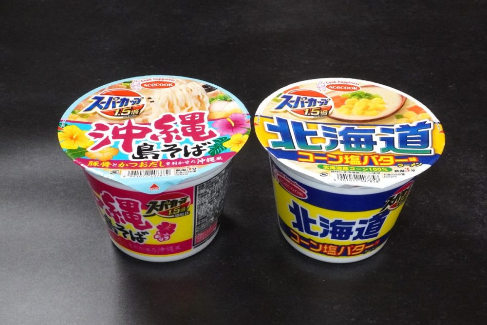 今回の「北海道 コーン塩バター味ラーメン」「沖縄 島そば」は夏に人気の観光地、北海道と沖縄がテーマのスーパーカップ。